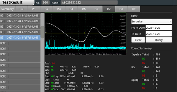 Example: Our tester is used in the mass production line of a major U.S. EV manufacturer.Equipment used: DWIT-05PD, DWX-05PD, ACPD-05X, repeated impulse surge application power supply.