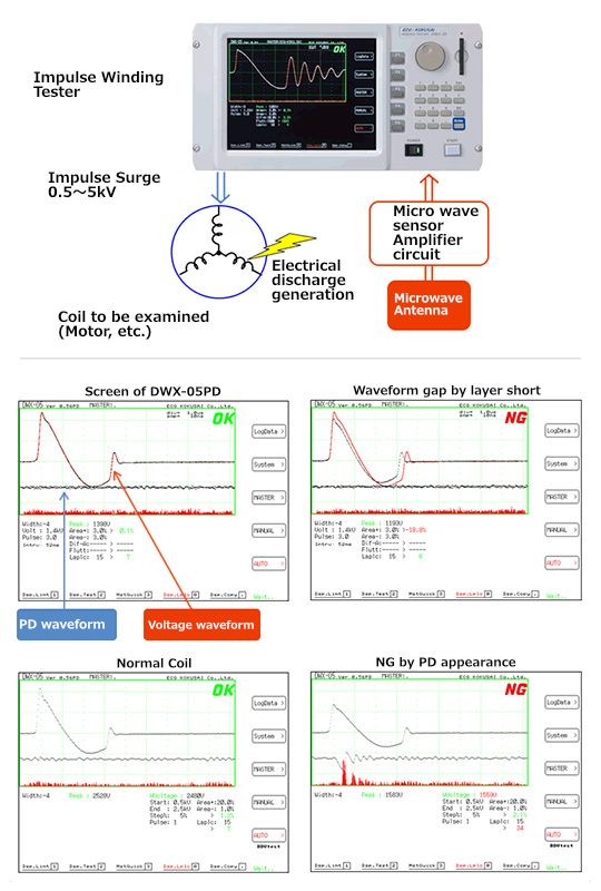 The PD detection sensor (micro wave sensor module) can be put up as an option and remodel to the impulse winding examination machine (DWX series).